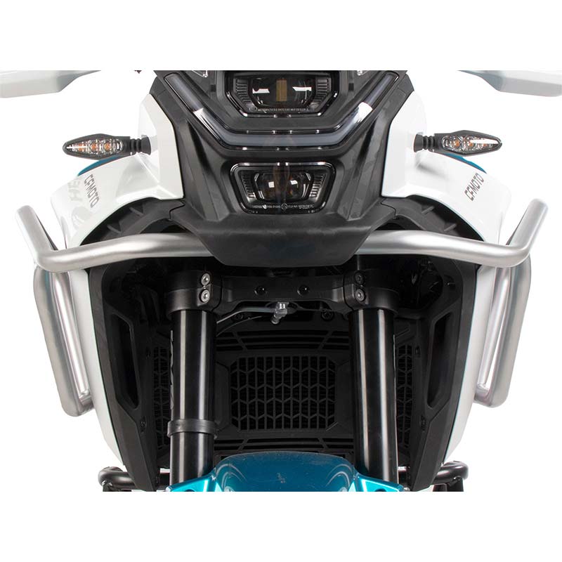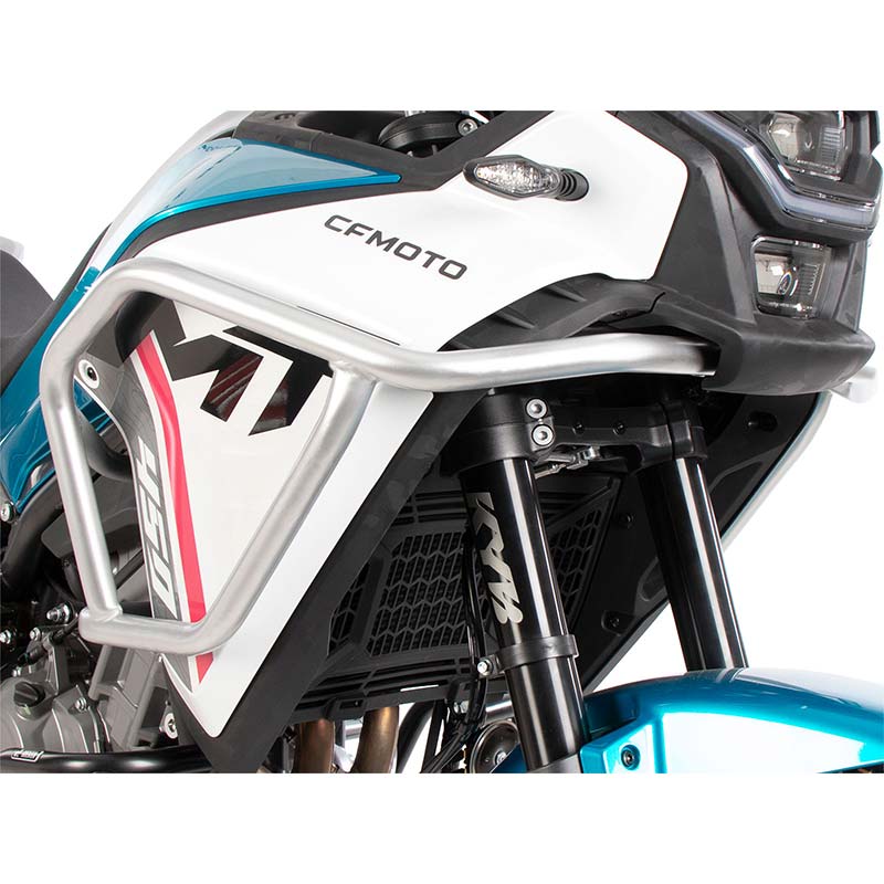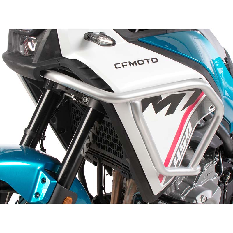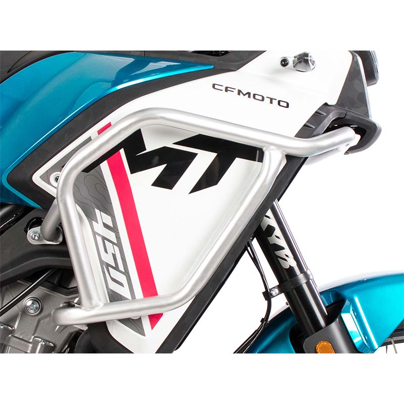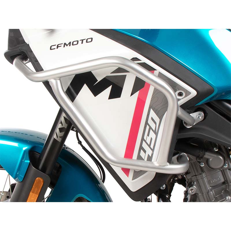 Ces crash bars réservoir pour CFMoto 450 MT 2024, version argentée, sont idéales pour :