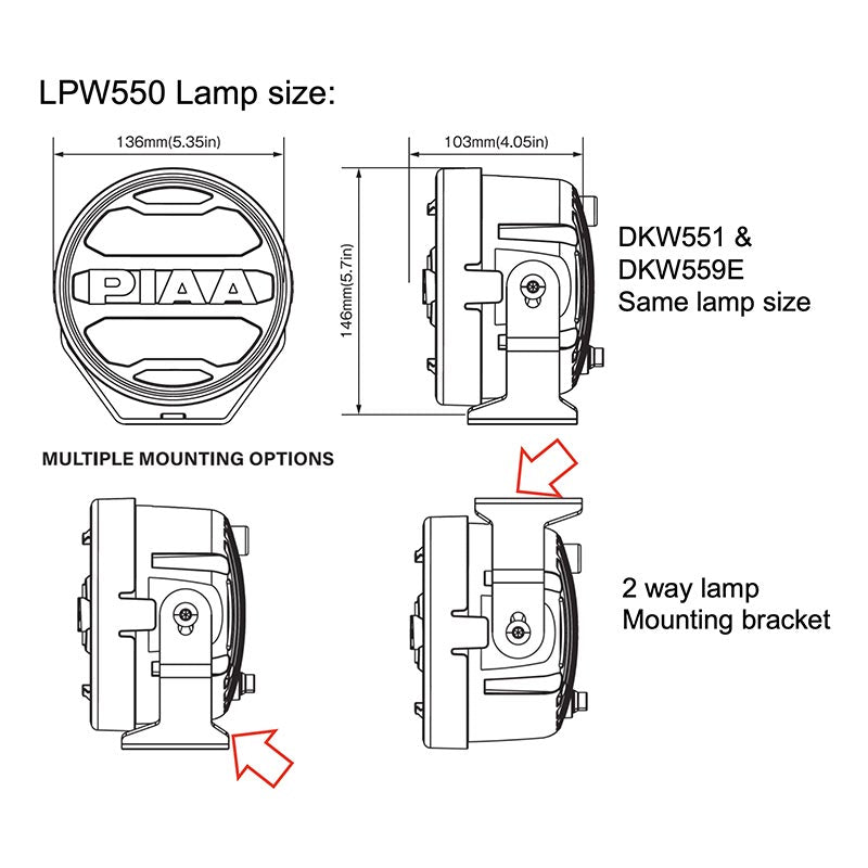 Compliant with SAE, ECE, CCC standards, the high-end PIAA LP550 LED additional lights are equipped with LEDs oriented towards the reflector (Reflector Facing) . The light, thus reflected by the multi-faceted surfaces, provides superior illumination , much more efficient than halogen headlights.